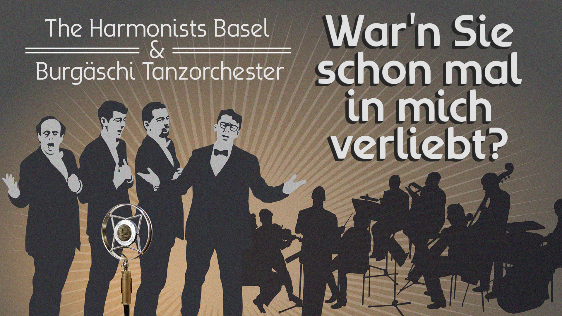 Für die Konzertserie «War’n Sie schon mal in mich verliebt?» haben sich The Harmonists Basel und das Tanzorchester der Bühne Burgäschi zu einer Kooperation entschlossen, die sich ganz der Unterhaltungsmusik der Weimarer Zeit verschreiben wird. Wer davor noch nie in diese Musik verliebt war, wird es danach zweifellos sein, denn – frei nach Max Hansen – in sie verliebt zu sein, ist das Schönste, was es gibt.